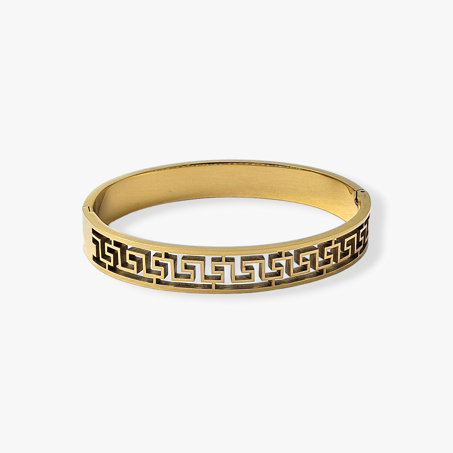 Introducing the Luxurious Versace Design Zig Zag Style Steel Bracelet in Gold Polish for Women